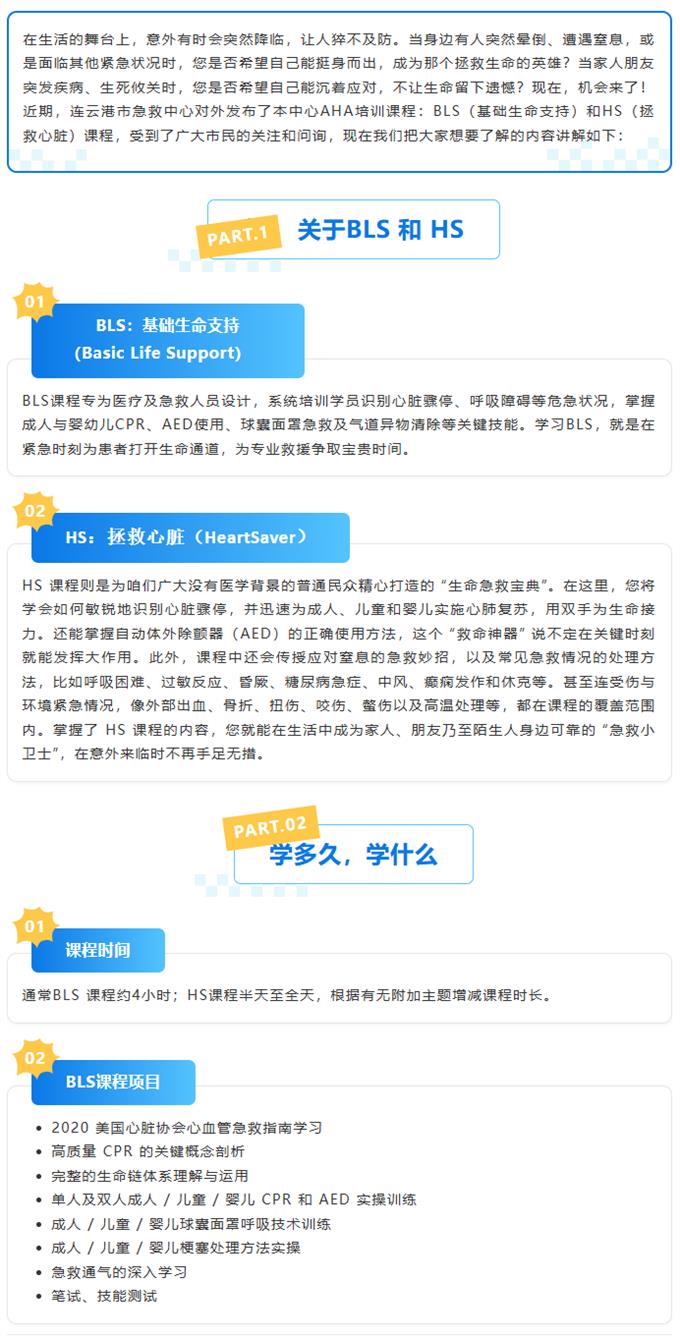 為生命護(hù)航,連云港市急救中心 AHA培訓(xùn)——BLS(基礎(chǔ)生命支持)和HS(拯救心臟)課程介紹