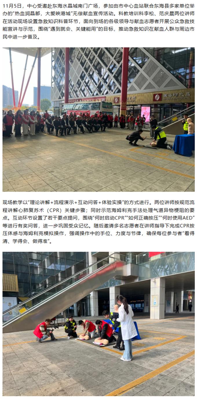 熱血潤晶都,急救進廣場,中心開展急救技能科普公益活動